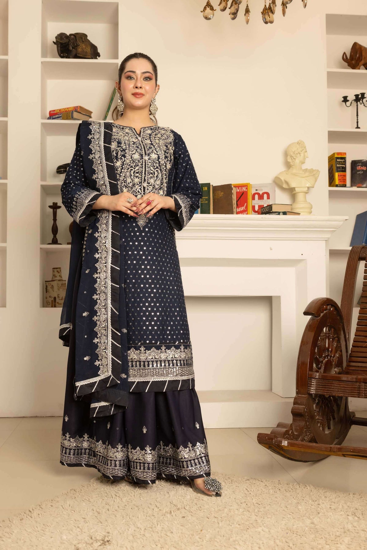 Turn heads with our Navy Blue Lehenga with Heavy Embroidery & Handwork, designed for women who want a perfect balance of tradition and modern sophistication. The detailed embroidery and handwork on the kameez and lehenga border bring richness to the outfit, making it ideal for weddings, receptions, and festive celebrations.