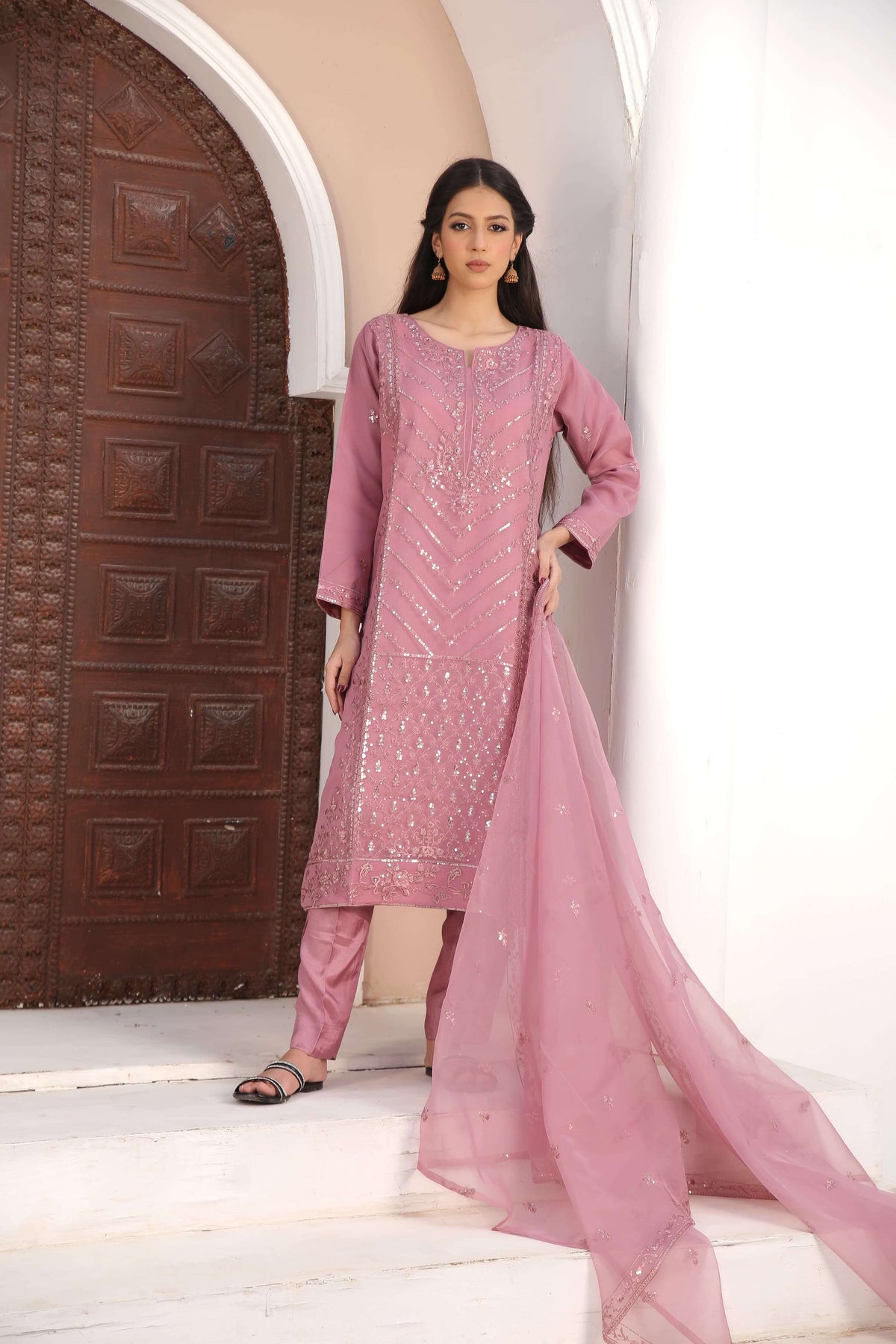 Shine bright with our Women’s Pink Organza Shalwar Kameez, featuring dazzling embroidery. This three-piece set, with a lightweight kameez, shalwar, and dupatta, is perfect for weddings, Eid, or festive events. Available in S-M-L. Free shipping!