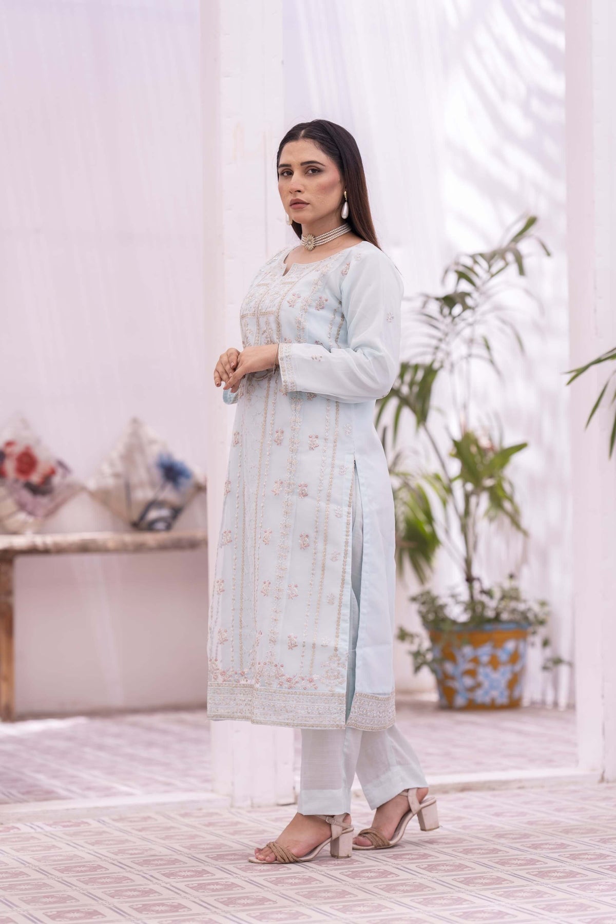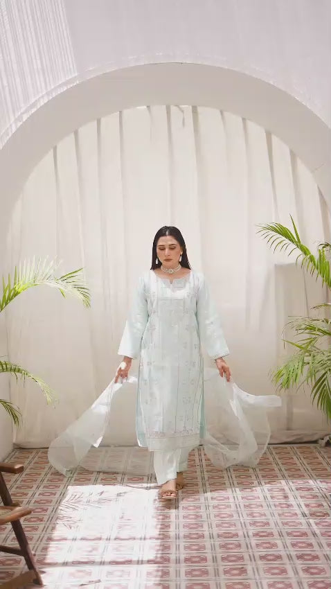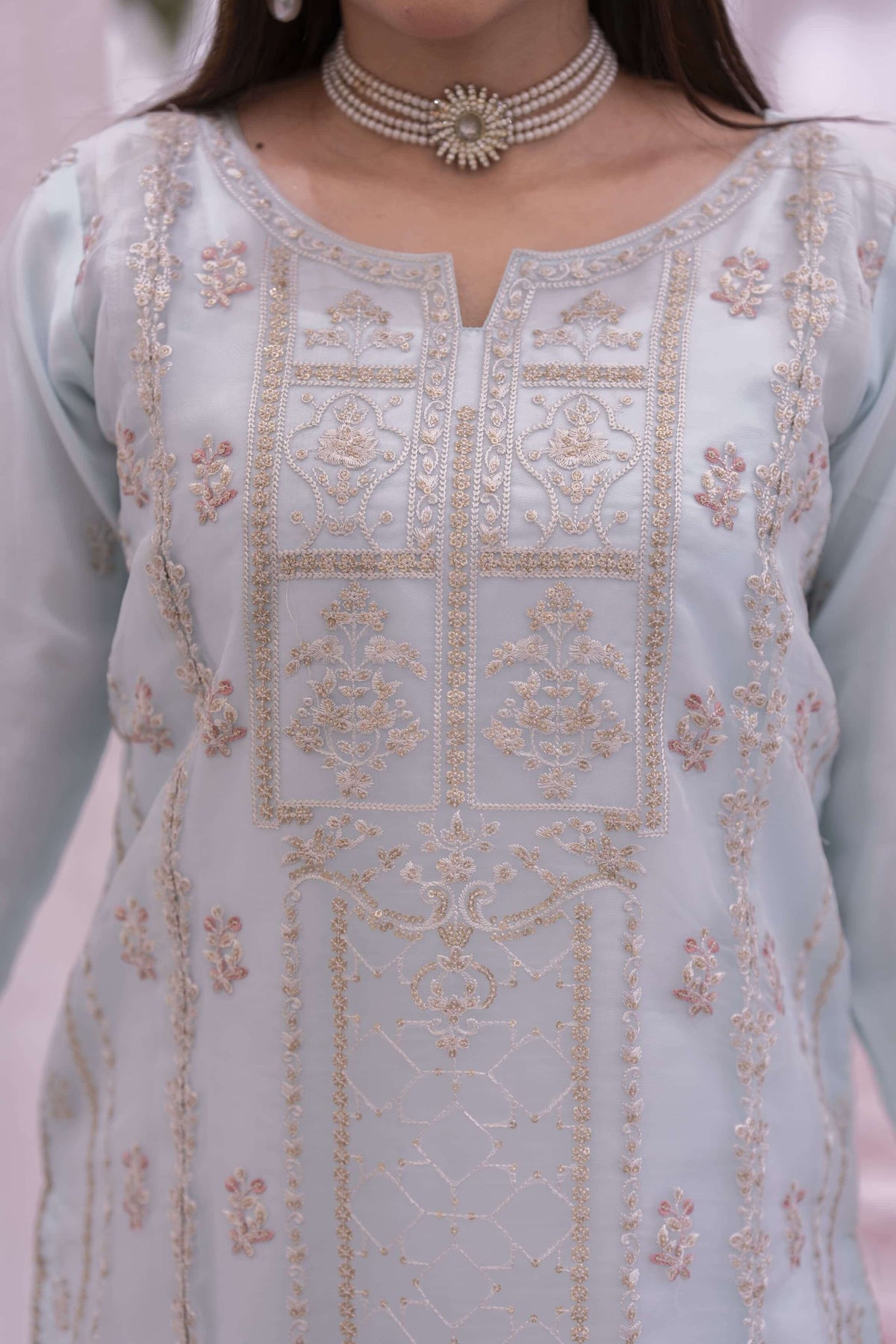 Women's Light Blue Organza Embroidered Shalwar Kameez Suit